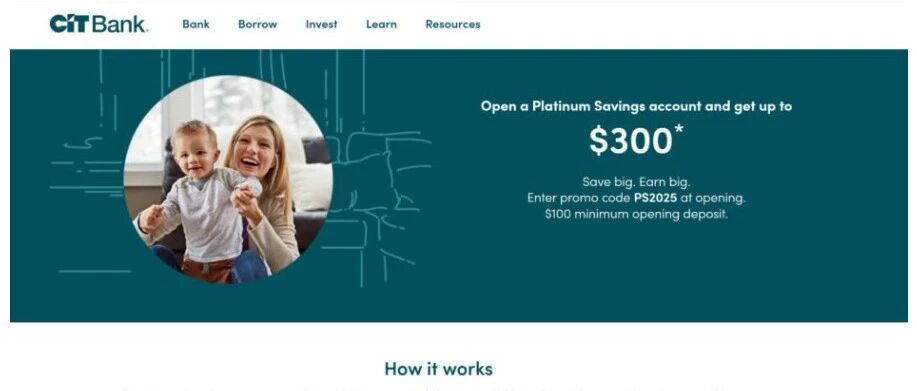 【2025.9 更新】CIT Platinum Saving 的开户奖励又来了,存入 $50k 可以有 $300 奖励,存入 $25k 有 $225 奖励。而且这个 saving 本身就有 3.85%APY,所以钱放着也可以。