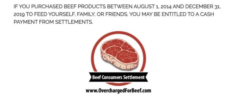 索赔资格:在 2014 年 8 月 1 日至 2019 年 12 月 31 日 期间,在美国境内为个人或家庭消费而购买过新鲜或冷冻牛肉产品的消费者。 索赔截止日期:2026 年 6 月 30 日。 和解总额:8750 万美元。