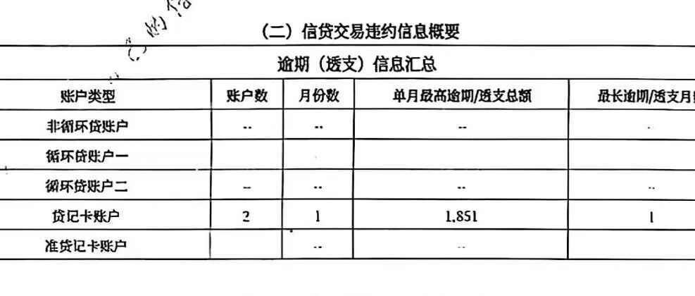比如下面这个会员的征信报告,1月1号后,贷记卡账户-逾期的一栏就会显示为:--