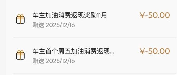 (1)每月首个周五10%返现50元+任意日期10%返现50元,可以直接在首个周五加油消费500元,即可拿到两个返现共100元,也就是20%返现。