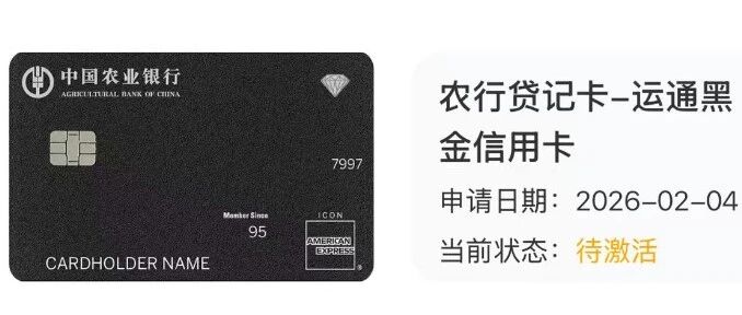 2026年1月1日至2026年6月30日,首次办理中国农业银行运通黑金信用卡主附卡的客户,在核卡后次两个自然月内,任意渠道消费满3笔,即可达标领取开卡礼一份(三选一)。每位客户最多可领取1份开卡礼。礼品共计5000份(发文前库存充足)