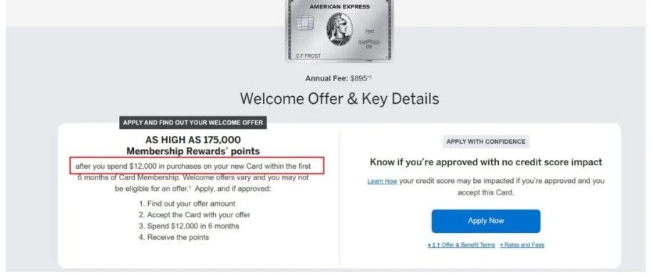 【2026.2 更新】这张卡不声不响把开户奖励的消费要求从 $8k 提升到 $12k,现在开户奖励是 as high as 175k,如果最终给你的奖励太低,只有 80k,那这个 $12k 消费性价比就很低了。