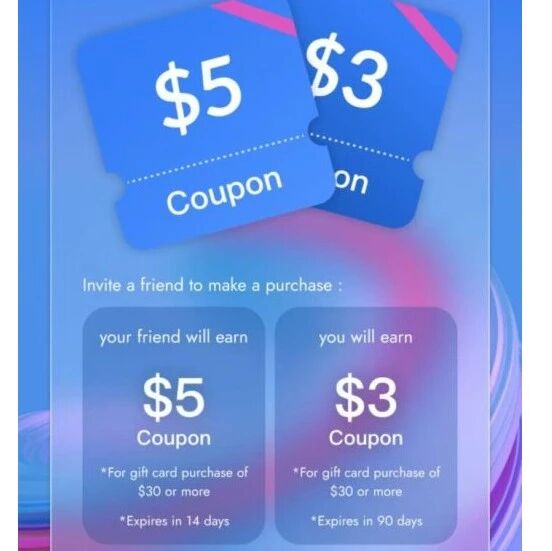 【美国区】Snaplii $5 coupon 链接(注册后或者注册前点击都可以,如果忘了点,在任意礼卡购买界面,添加 CC8507 也可以) 【加拿大区】Snaplii $5 coupon 链接(注册后或者注册前点击都可以,如果忘了点,在任意礼卡购买界面,添加 610DFF 也可以)