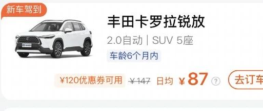 120元新人专享券:适用于新用户首单,且租期>2天的日租或套餐订单,节假日期间不可用,相当于 "白送" 一天租车钱;