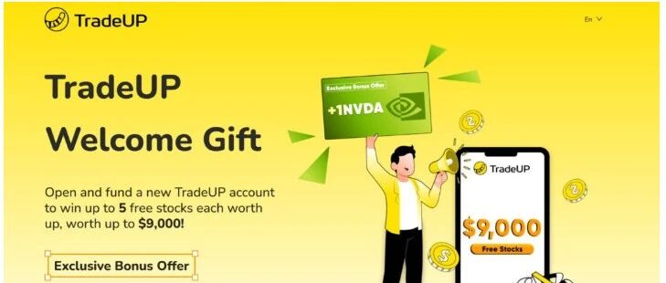 【本站专属奖励】开设 TradeUP 账户并入金 $2000,并保持 30 天,就可以获赠英伟达 NVDA 股票一只(价值 $158 左右)。额外 NVDA 的活动截止日期是 2025 年 10 月 1 日。 开户抽取最多 5 只股票,每只最高 $1800。净入金 $100-$2499,抽取 2 股;净入金 $2500-$9999,抽取 3 股;净入金 $10k-$99.9k,抽取 4 股;净入金 $100k+,抽取 5 股 如果你可以通过转仓来入金,还可以激活最高 3% 的转仓将奖励(详细操作请看下面转仓章节)。 现金账户前三个月 4.07%APY(会随时间略有浮动)。