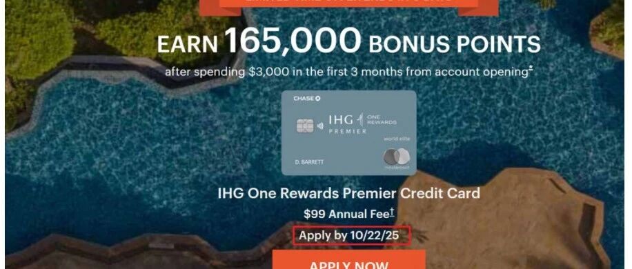 【限时】Chase IHG Traveler(2 个 50k 房券+40k)