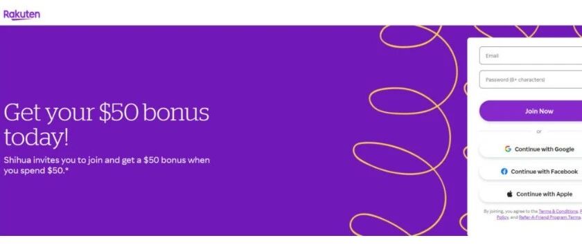 Rakuten 注册链接($50 注册奖励;需 90 天内通过返现网的链接,在商家花至少 $50)