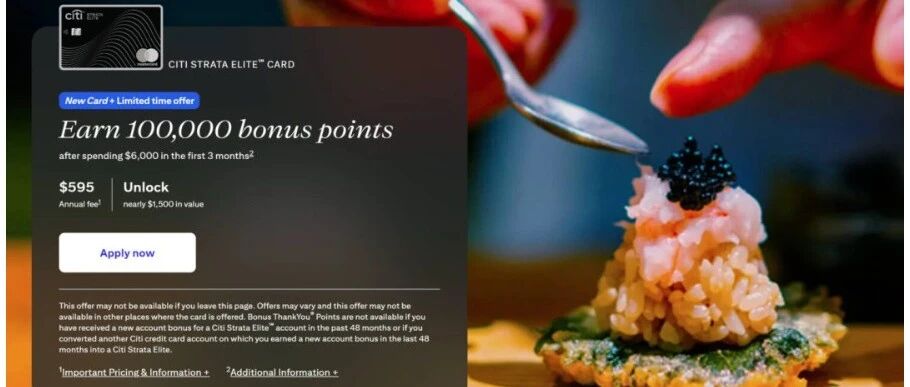 Citi Strata Elite 100k史高奖励2月4日截止,立即申请!