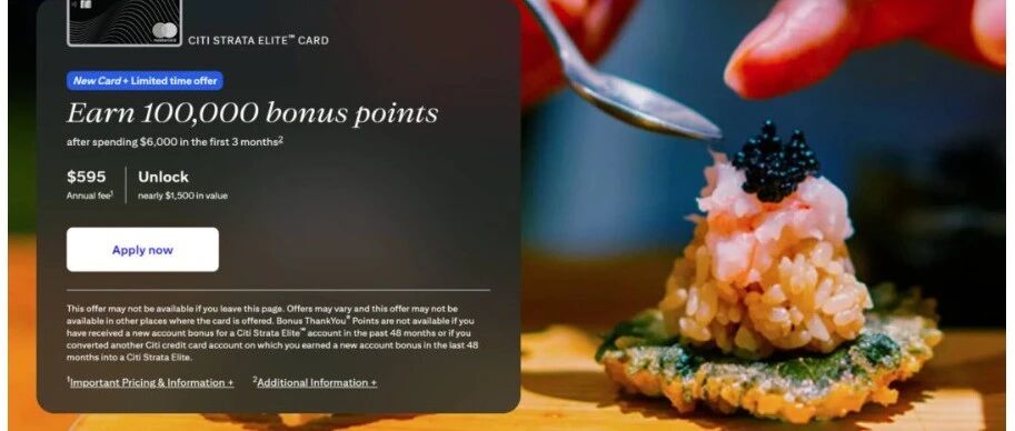 Citi Strata Elite 100k 申请链接 https://shorturl.at/SBKv4