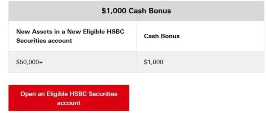 收到 HSBC 的促销邮件,老用户也可以参与存款送 $5k 的活动,而且开 security 账户并存钱还有额外 $1k 奖励,两个奖励可以同时获取。具体如下